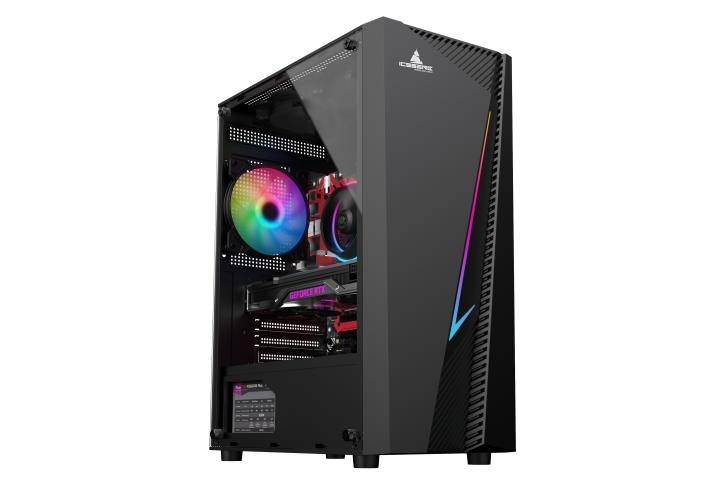 Gabinete mid-tower con panel lateral de vidrio templado y ventilador ARGB preinstalado. Diseño moderno, optimización de espacio y refrigeración avanzada para sistemas gaming y de alto rendimiento.