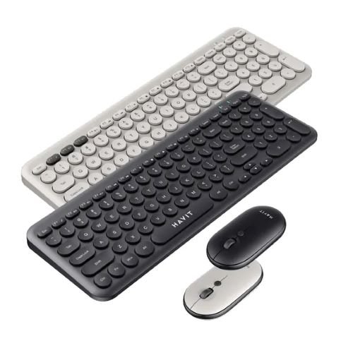 Combo inalámbrico HAVIT KB254GCM negro/gris con teclado de tamaño completo y mouse ergonómico. Conexión 2.4 GHz, funcionamiento silencioso y diseño profesional ideal para oficina o casa.